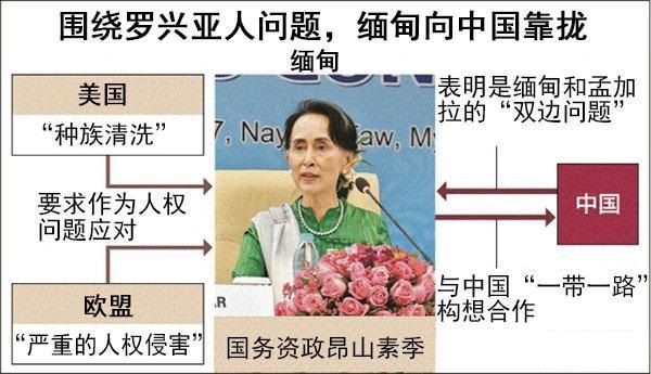 最為擔(dān)心緬甸靠攏中國(guó)的是日本政府。日本政府和民營(yíng)企業(yè)正在支援緬甸經(jīng)濟(jì)開(kāi)發(fā),包括迪拉瓦工業(yè)園區(qū)和仰光的城市開(kāi)發(fā)等。日本就羅興亞人問(wèn)題表示,“如果緬甸政府自身不采取行動(dòng),將無(wú)法從根本上解決”,并未贊同歐美一味施壓的態(tài)度。